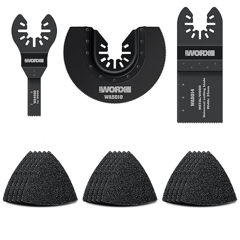 Набор из 18 сменных насадок для резки, зачистки, шлифовки, пиления и заточки. Совместимы с реноваторами Worx: WX682.9, WX678, WX693, WX696, WX686, WX680, WX681, WX682.